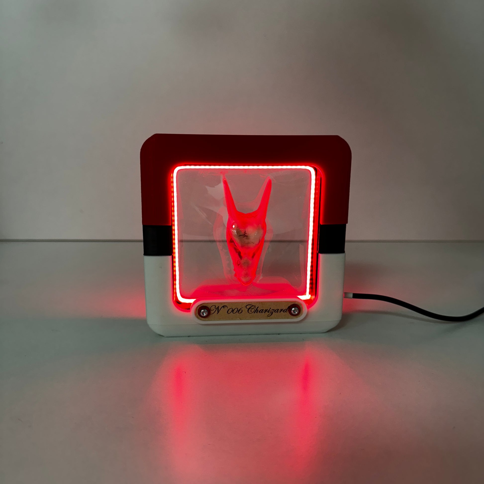 Realizado en impresión 3d y pintado a mano ,incorpora una tira led que es posible graduar en intensidad , para alimentar tiene que usar un puerto USB, posibilidad de incorporarlo a una batería portátil. La tira de papel utilizada para colocar el nombre esta realizada artesanalmente y los tornillos son de aluminio brillante.
