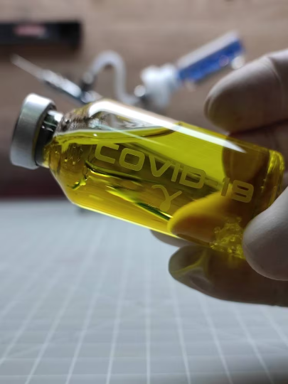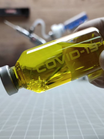 Reproducción ficticia del virus covid 19. Se trata de un vial de colección realizado envidio de borosilicato. En su interior contiene una reproducción del virus covid-19 con tecnología de impresión 3D. Son viales que contienen 30 ml de líquido en su interior y teñidos. Está completamente sellado y mide unos 7 cm de altura. Precauciones: consérvelo en lugar fresco y, lejos de la exposición de la luz solar. No agitar con fuerza. Conservar a temperatura ambiente entre 15 y 25 grados.
