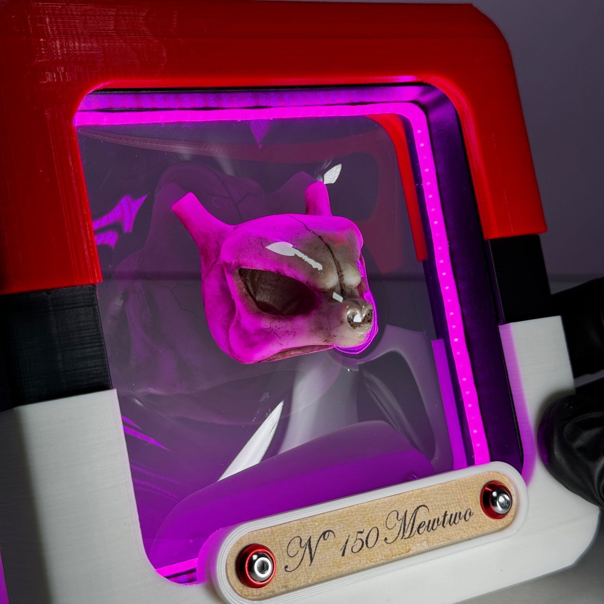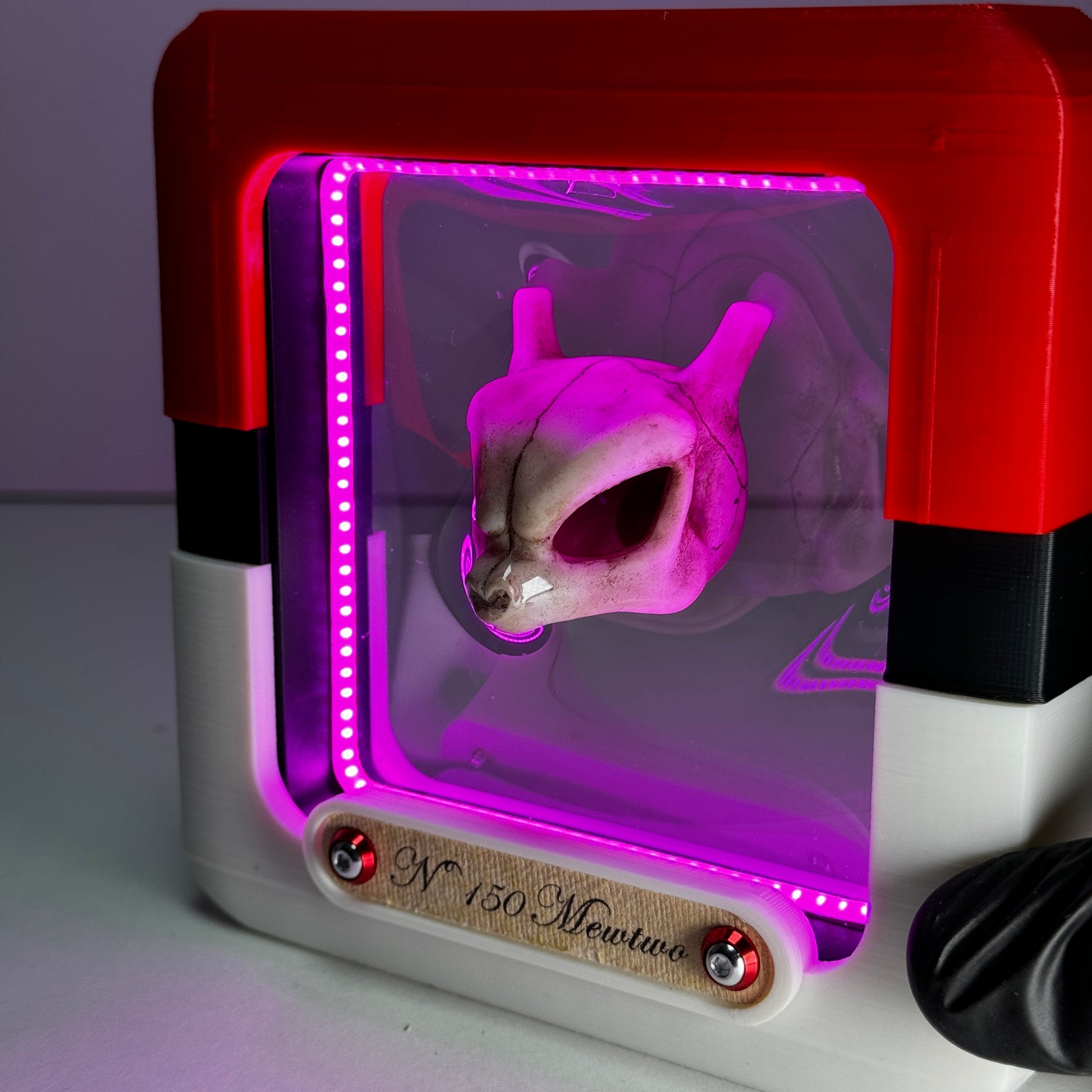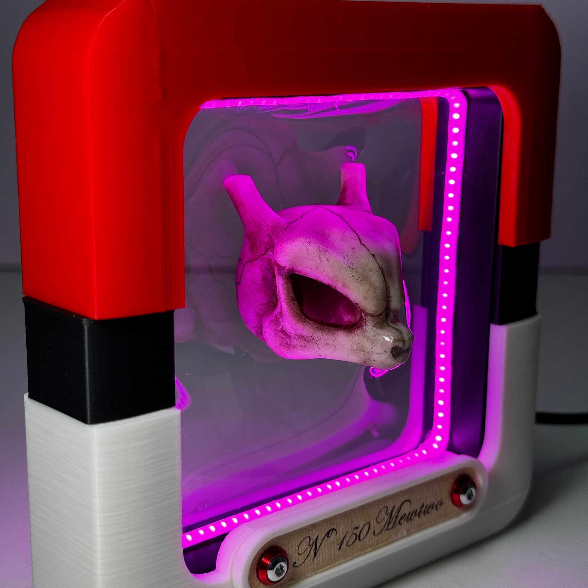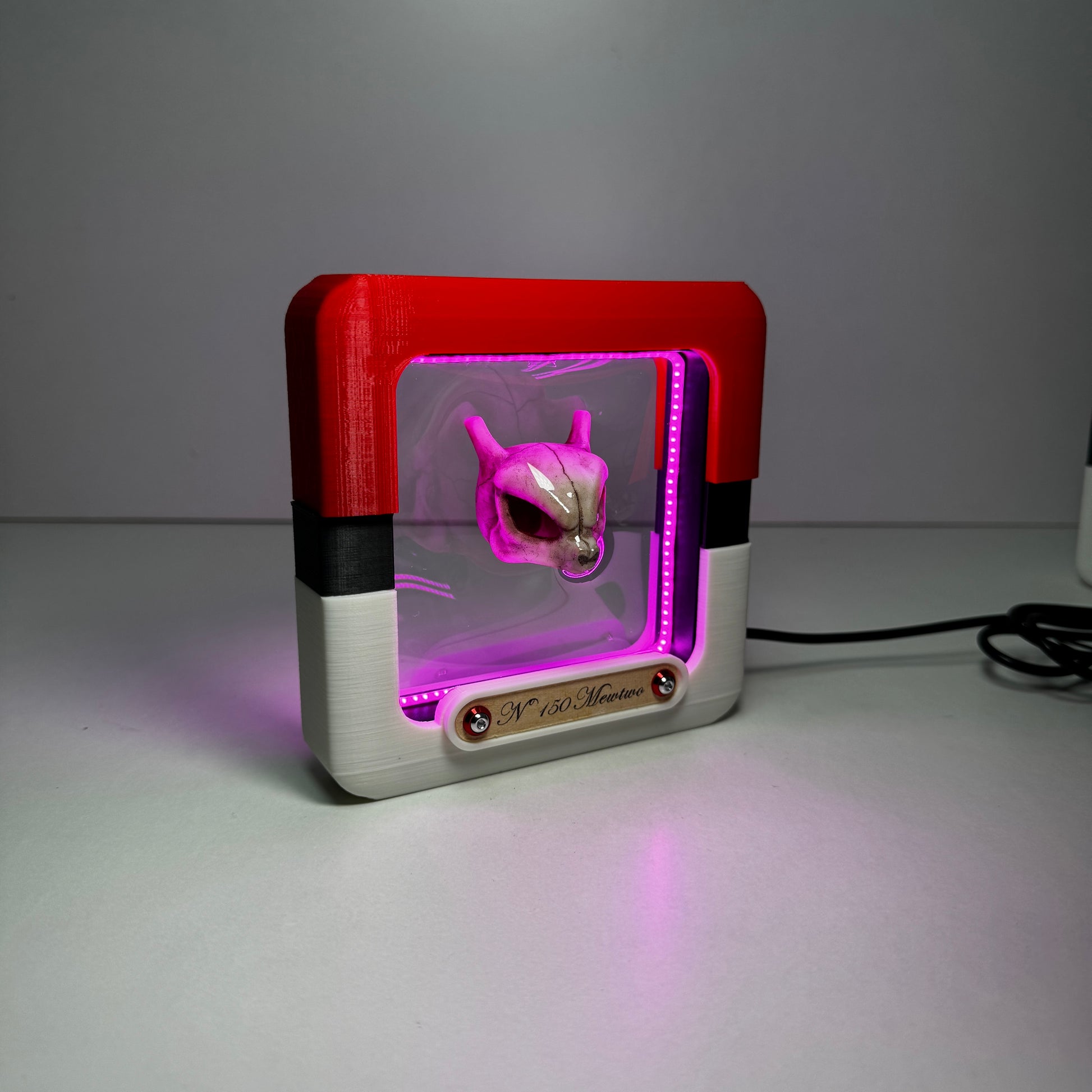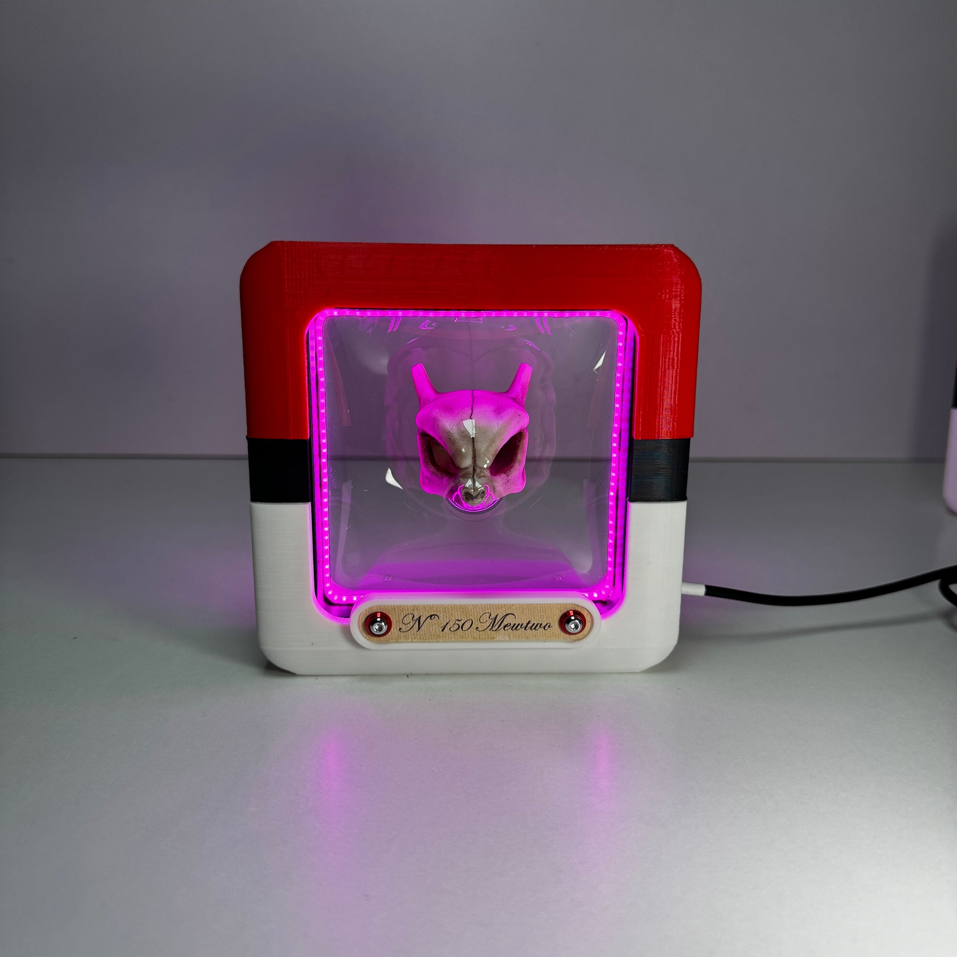 Realizado en impresión 3d y pintado a mano ,incorpora una tira led que es posible graduar en intensidad , para alimentar tiene que usar un puerto USB, posibilidad de incorporarlo a una batería portátil. La tira de papel utilizada para colocar el nombre esta realizada artesanalmente y los tornillos son de aluminio brillante.