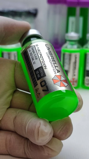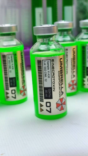 Reproducción de los recipientes de Resident Evil Umbrella Corporativo.