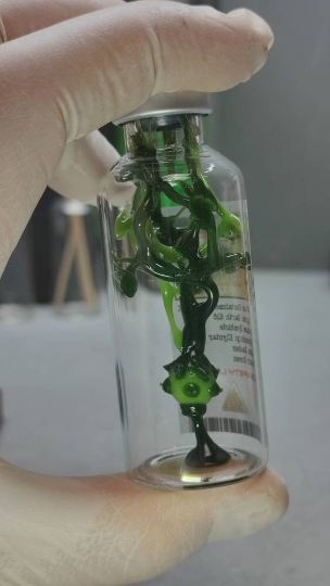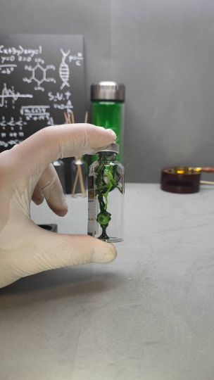 Vial inspirado en los cómics de Marvel. En el se encierra el simbionte Venom, uno de los grandes enemigos de Spider-Man. Está realizado en un vial de 30 ml de vidrio de grado médico y sellado como tal. Tiene una altura de 7 cm y el simbionte en su interior está realizado a mano desde el interior. Cada simbionte es diferente, no hay dos iguales! Un objeto alucinante para los fans de Marvel.