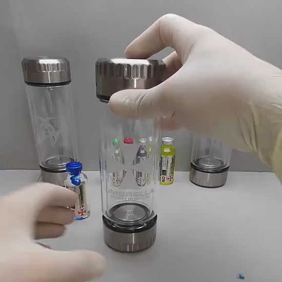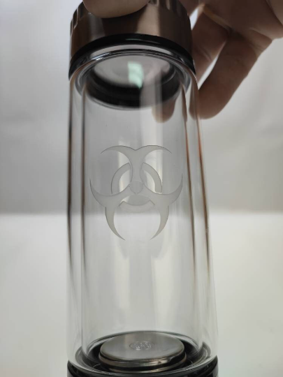 Contenedor Biohazard para dar un aspecto aún más realista a los viales comprados en mi tienda.Solo tendrá que desenroscar una de las tapaderas para poder introducir un vial dentro.Tiene el símbolo de Biohazard grabado en el cristal con una pistola de chorreado que funciona con óxido de aluminio, para darle profundidad y un realismo único.