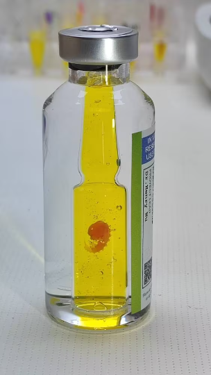 Se trata de un vial de 30 ml inspirado en la saga de Jurassic park. Contiene una ampolla relleno de un liquido espeso amarillo (Muestra ADN) donde flota en el una replica de embrión de dinosaurio 8 de semanas de vida.