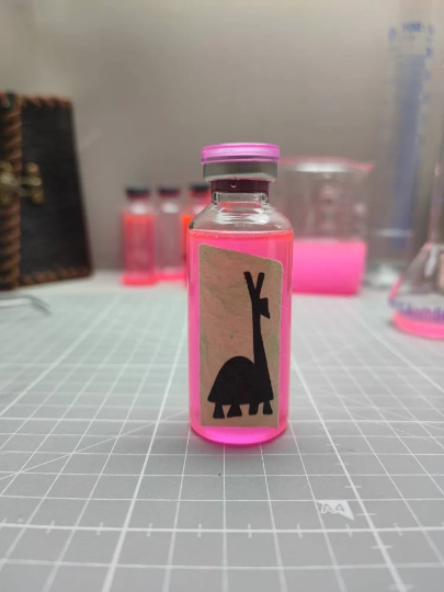Esencia de vial de vidrio de veneno de llama para Kuzco directamente del laboratorio de Yzma a usted. Inspirado en The Emperor's New Groove de Disney, ¡es el regalo perfecto para cualquier fanático de Disney! Vial de vidrio etiquetado a mano con corcho sellado, el artículo está destinado a DISPLAY ONLY y NO ES PARA CONSUMO.