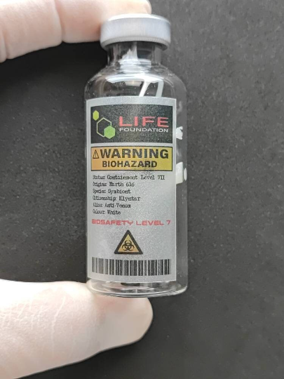 Vial inspirado en los cómics de Marvel. En el se encierra el simbionte Venom, uno de los grandes enemigos de Spider-Man. Está realizado en un vial de 30 ml de vidrio de grado médico y sellado como tal. Tiene una altura de 7 cm y el simbionte en su interior está realizado a mano desde el interior. Cada simbionte es diferente, no hay dos iguales! Un objeto alucinante para los fans de Marvel.