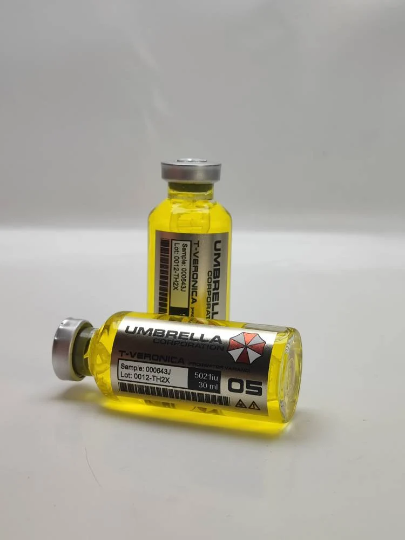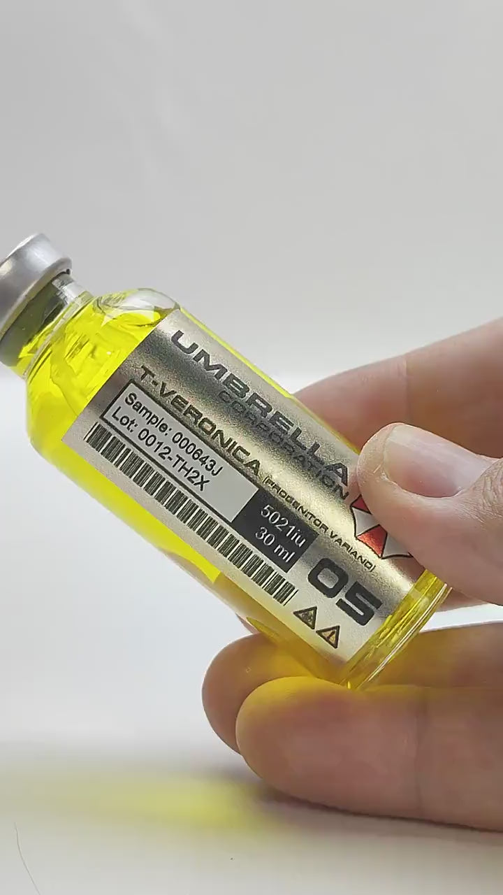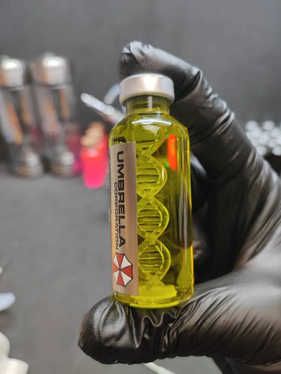 Reproducción de los recipientes de Resident Evil Umbrella Corporativo.