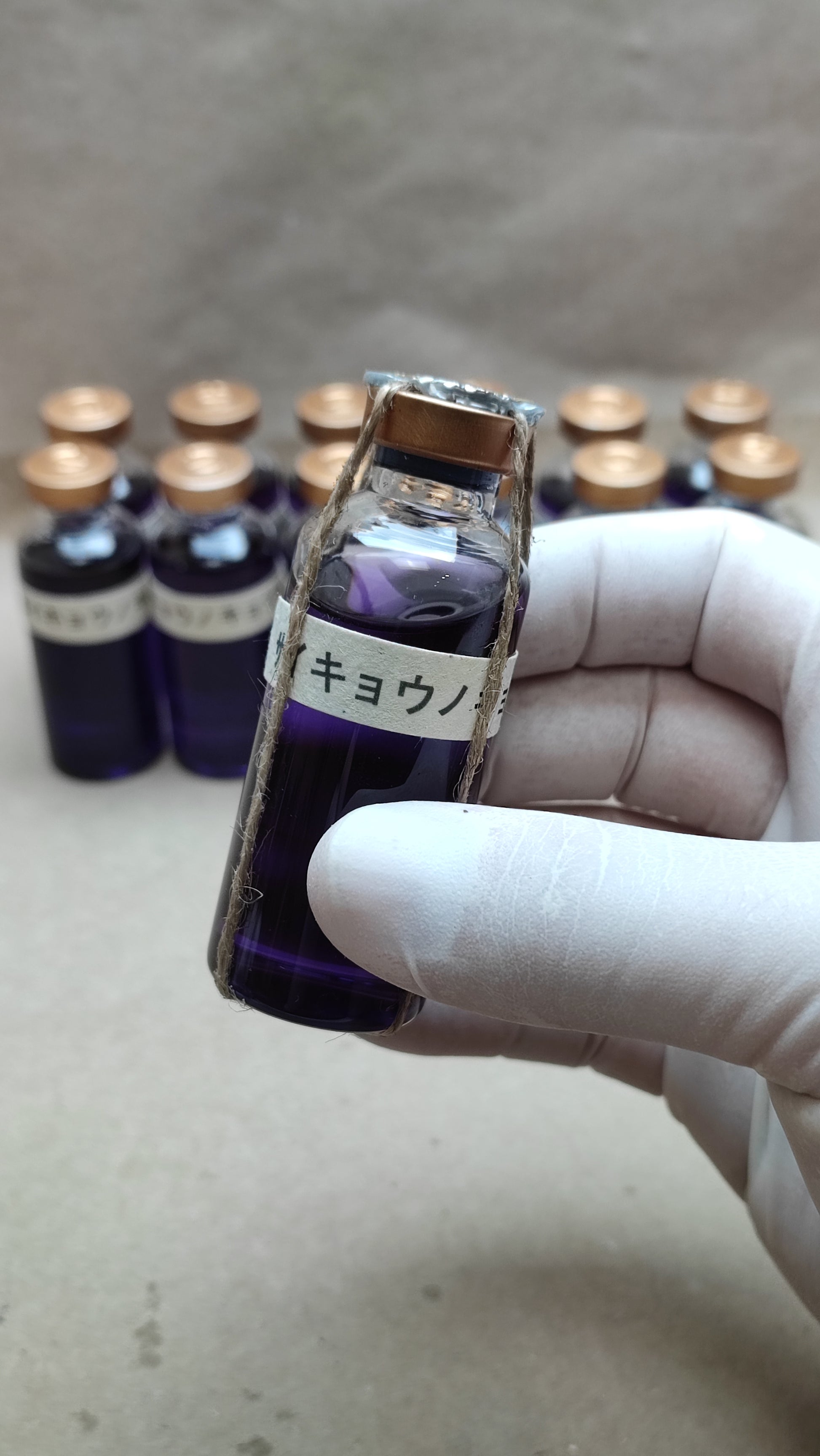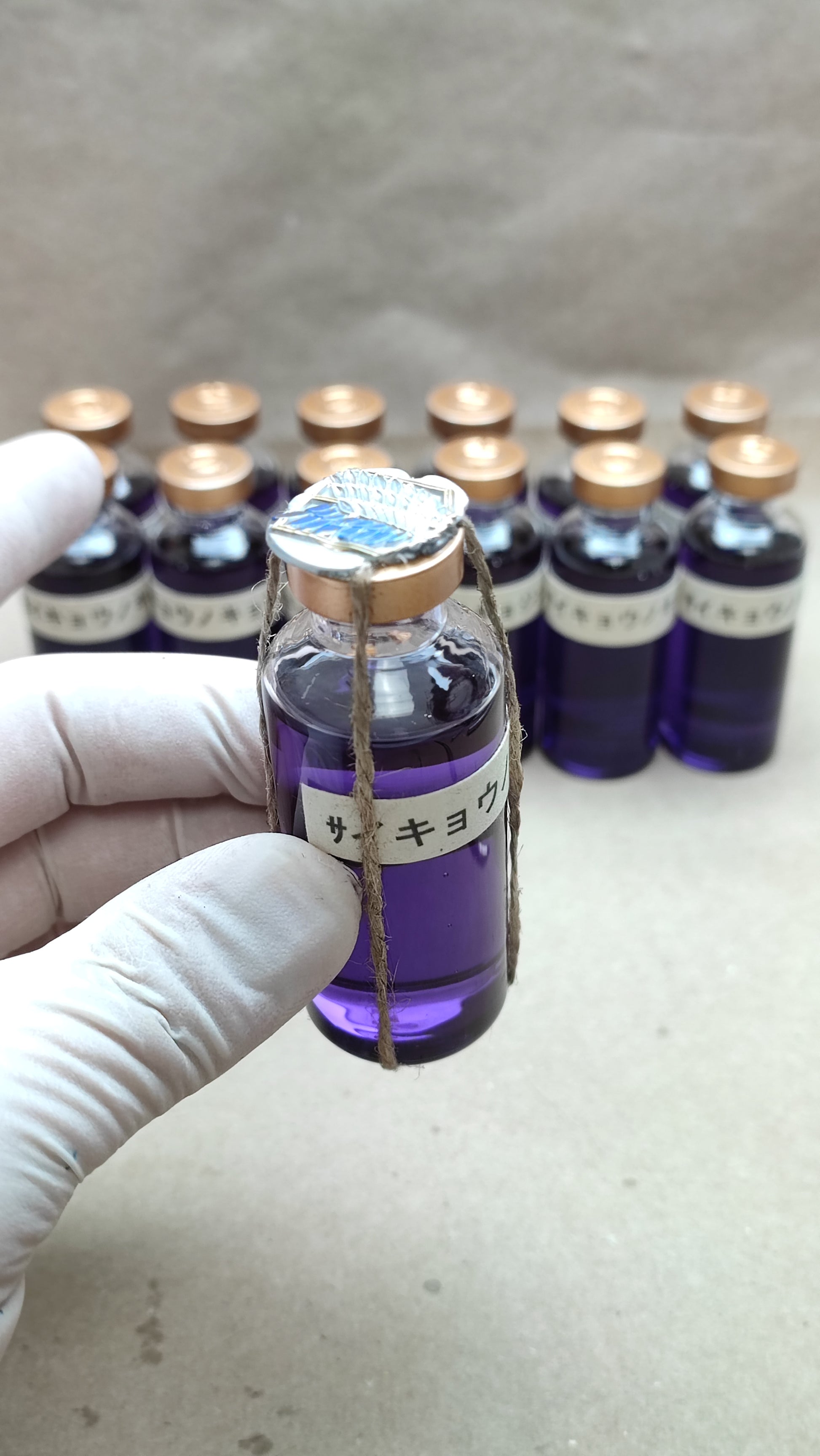 Es un objeto de colección realizado en vidrio de grado medico real, en el lleva un su interior una simulación de líquido espeso cefalorraquídeo morado. El vial mide 8 cm de alto +/- y el recipiente contiene 30 cl de liquido.En la parte externa tiene un cartel de papel 100% artesanal donde recrea descripciones como en la serie,y sellado con el escudo de la serie y pintado a mano... ALUCINANTE!! Es un producto realizado artesanalmente con el mayor detenimiento en cada una de sus partes.