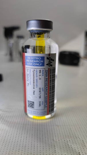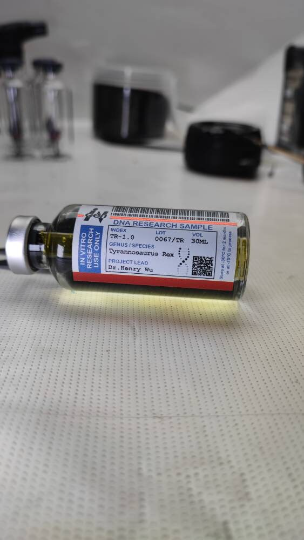 Se trata de un vial de 30 ml inspirado en la saga de Jurassic park. Contiene una ampolla relleno de un liquido espeso amarillo (Muestra ADN) donde flota en el una replica de embrión de dinosaurio de semanas de vida.
