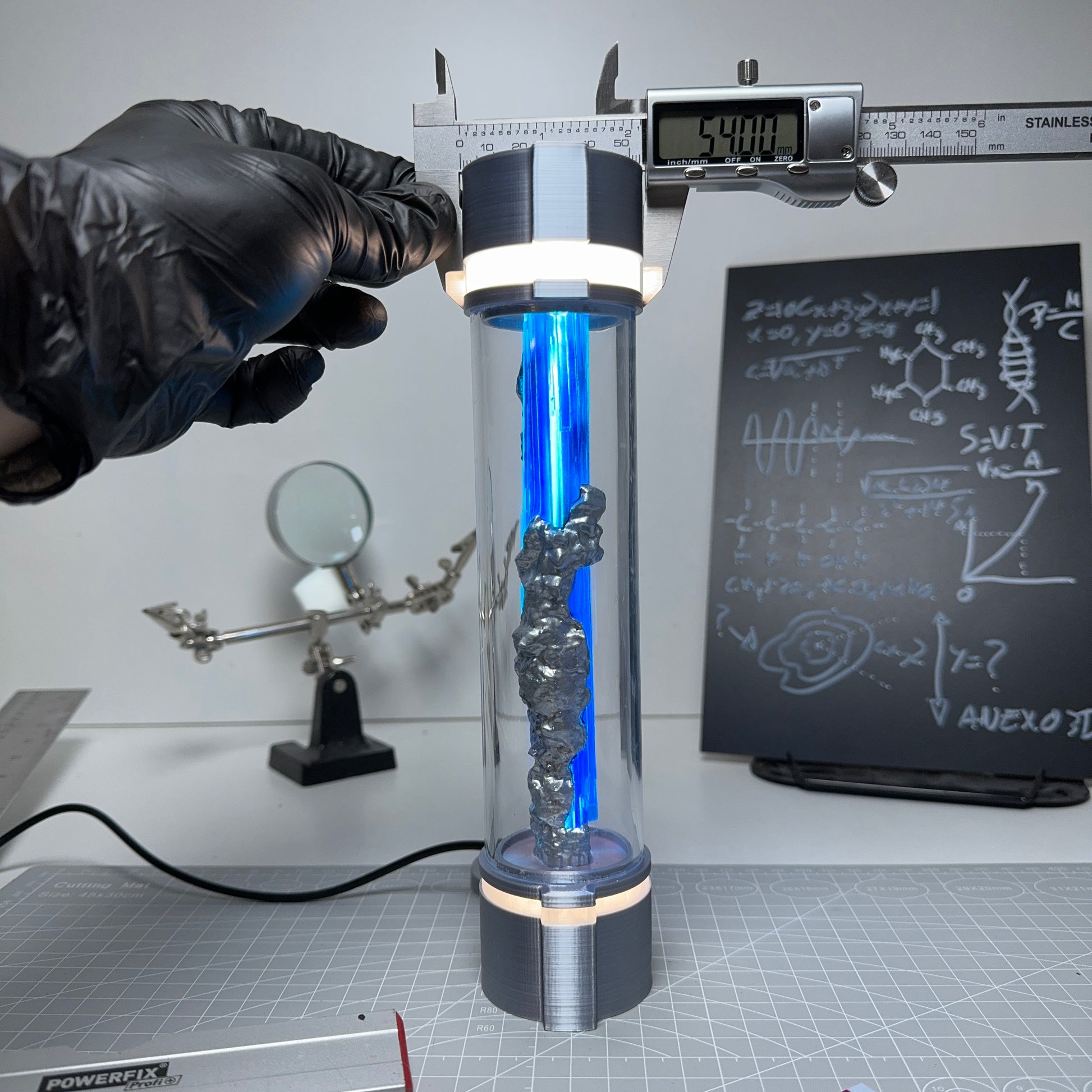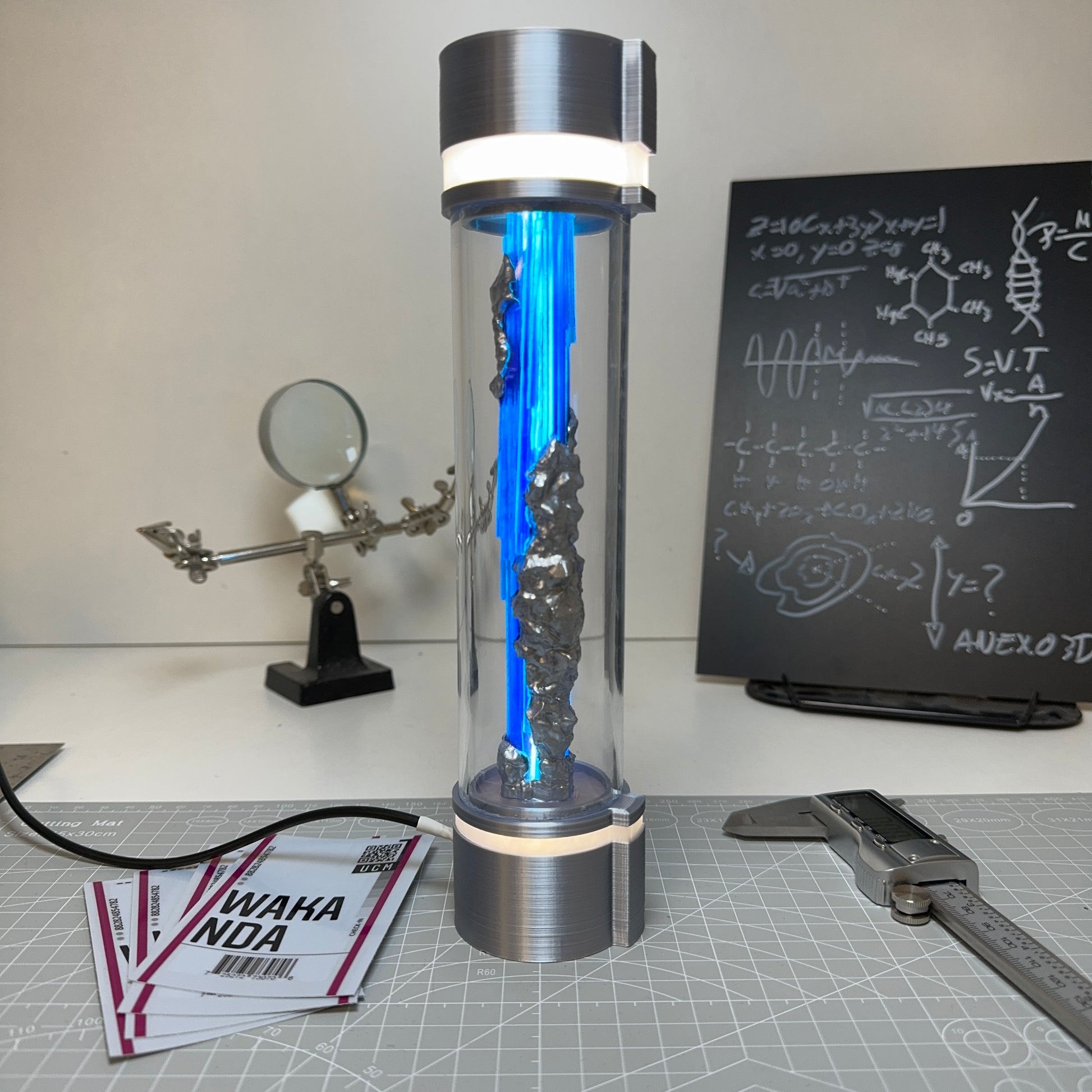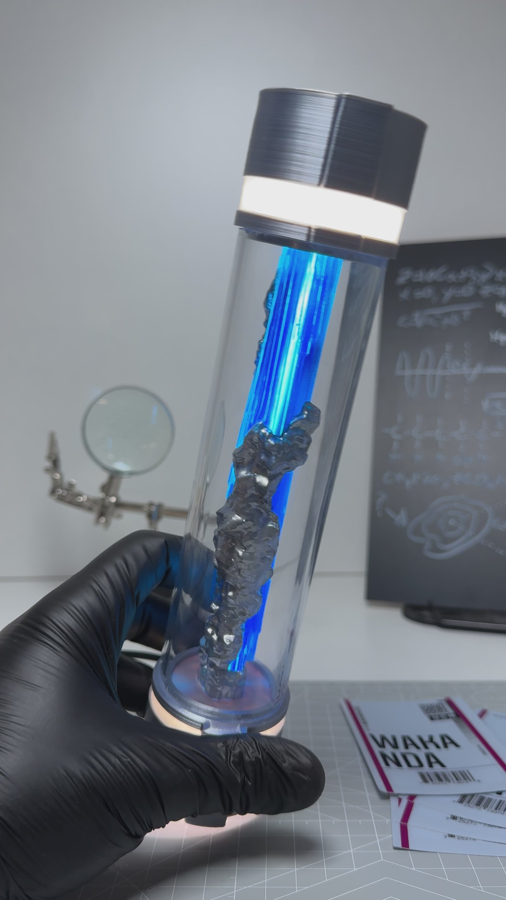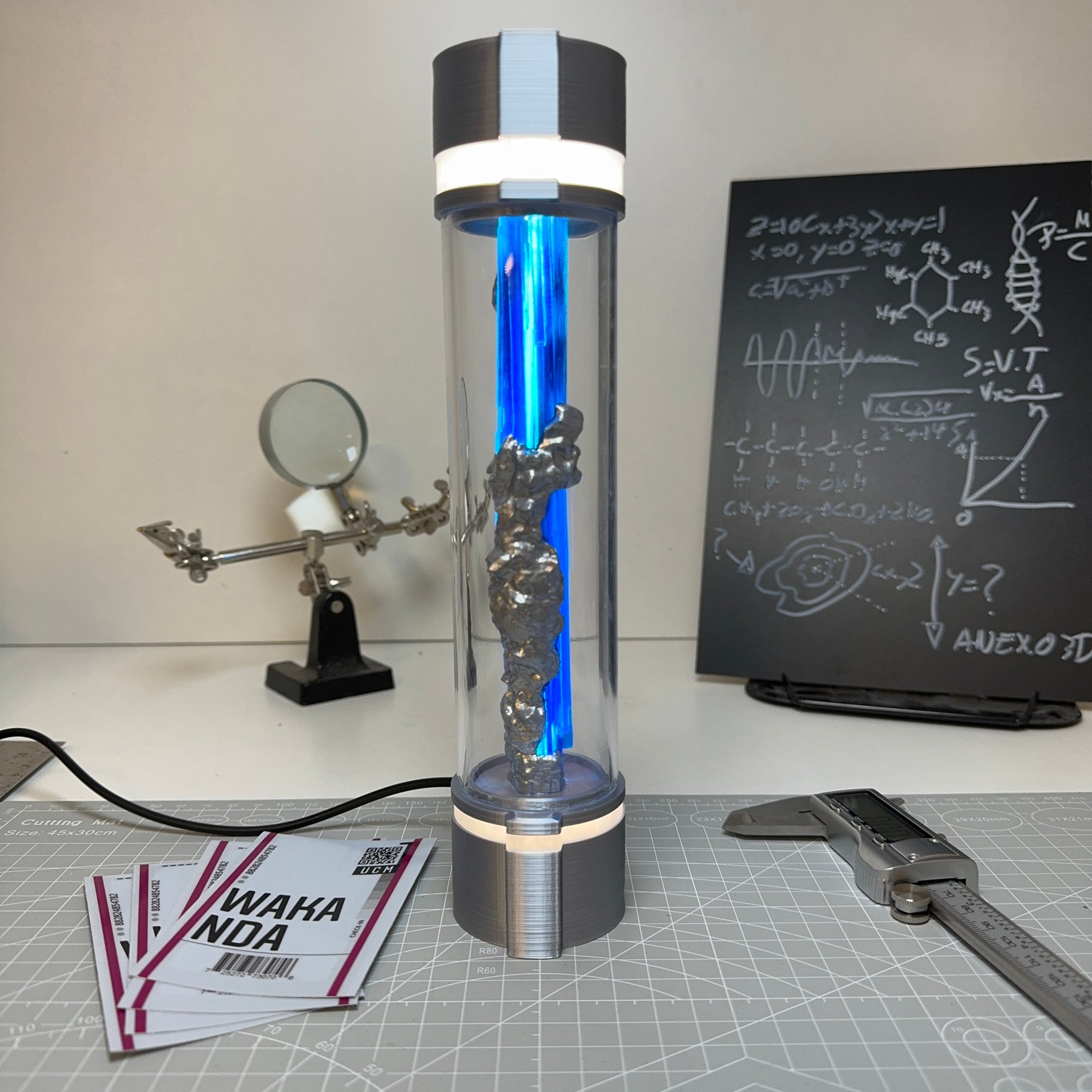Tanto la parte superior como la inferior está impreso en PLA metálico seda para dar esa apariencia brillante simulando ser natal y tiene una franja de un tono translúcido para poder dar el efecto de luz alucinante.