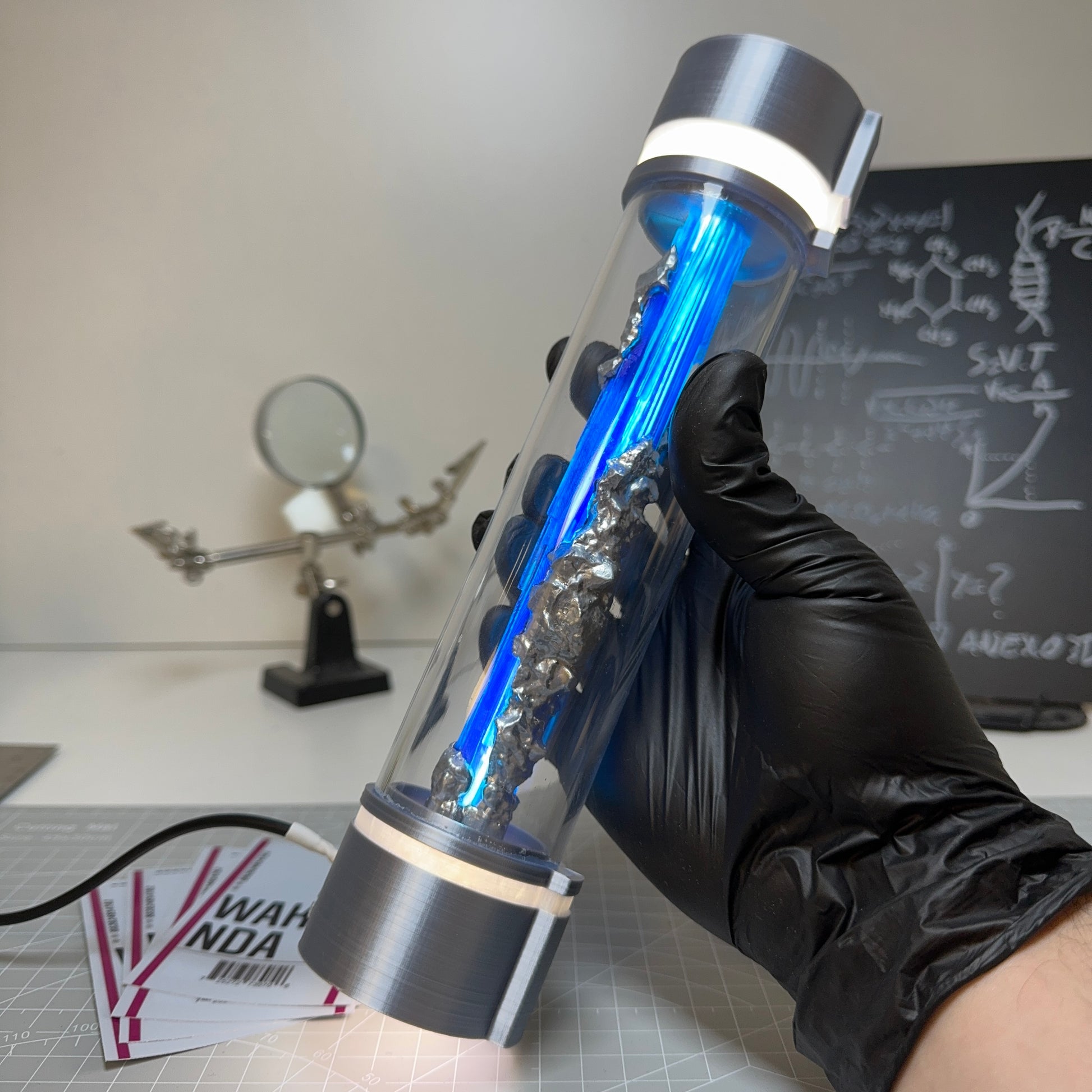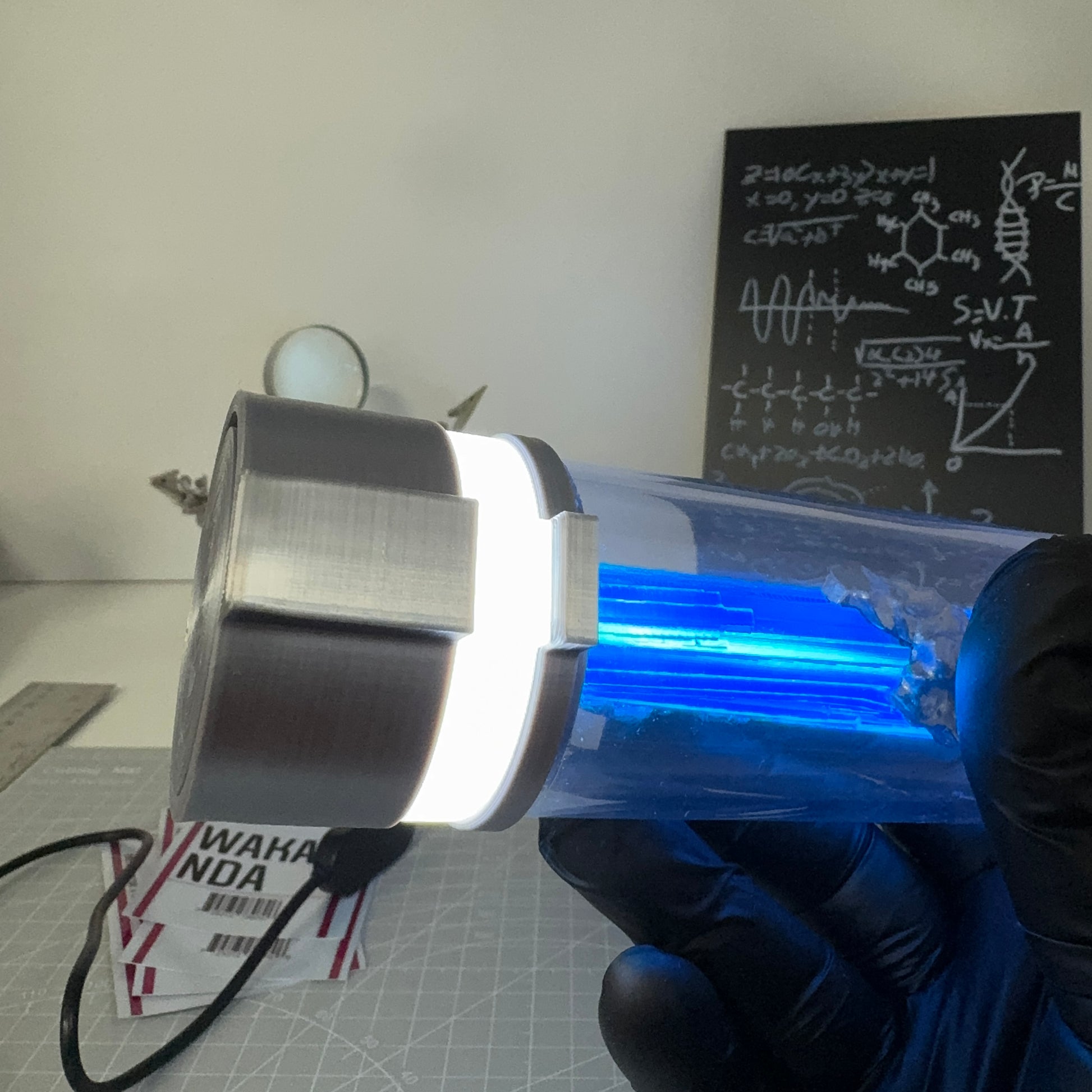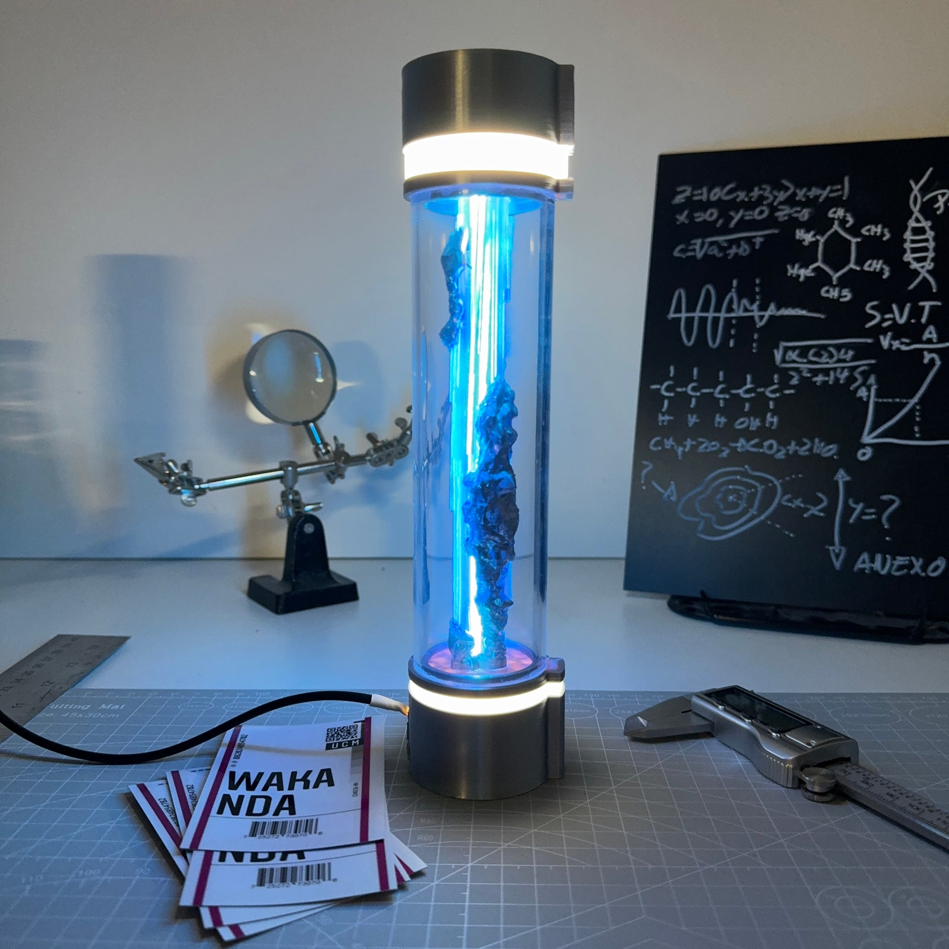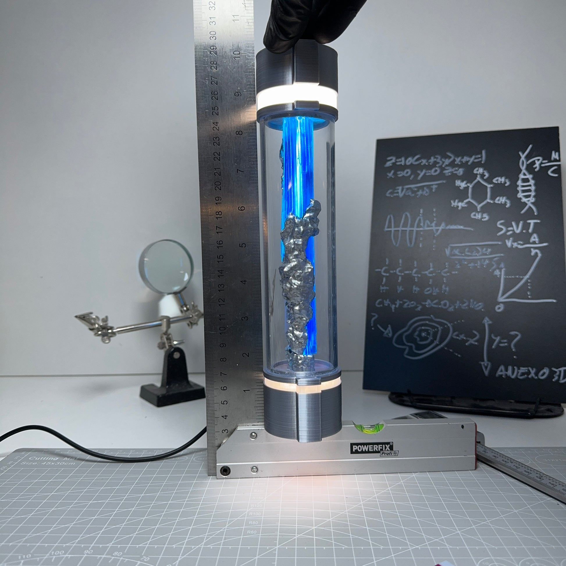 Tanto la parte superior como la inferior está impreso en PLA metálico seda para dar esa apariencia brillante simulando ser natal y tiene una franja de un tono translúcido para poder dar el efecto de luz alucinante.