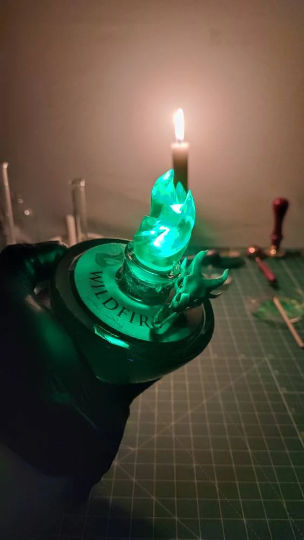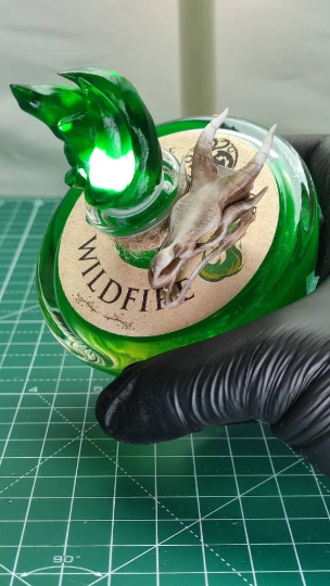 Inspired by the Game of Thrones series, and using the best materials on the market, including the handmade paper we use to print, you will not find anything like it on the market. The dragon's skull is hand-painted and The potion incorporates a small light inside the flame of fire that you will have to take out only the flame and turn the small flashlight to turn it on and give it a burning flame effect that is incredible, it has built-in batteries.